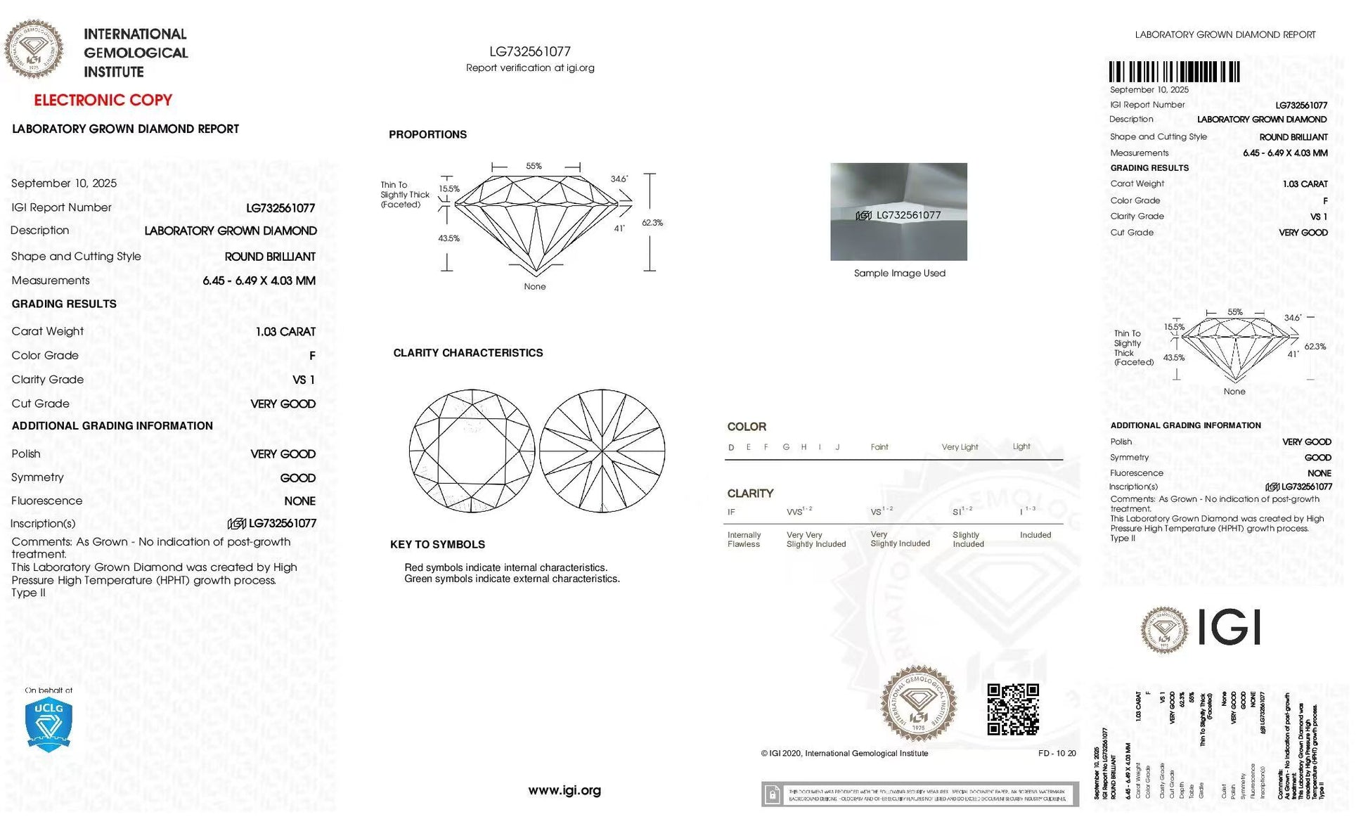 · Diamond Color & Clarity: F-Color, VS1-Clarity